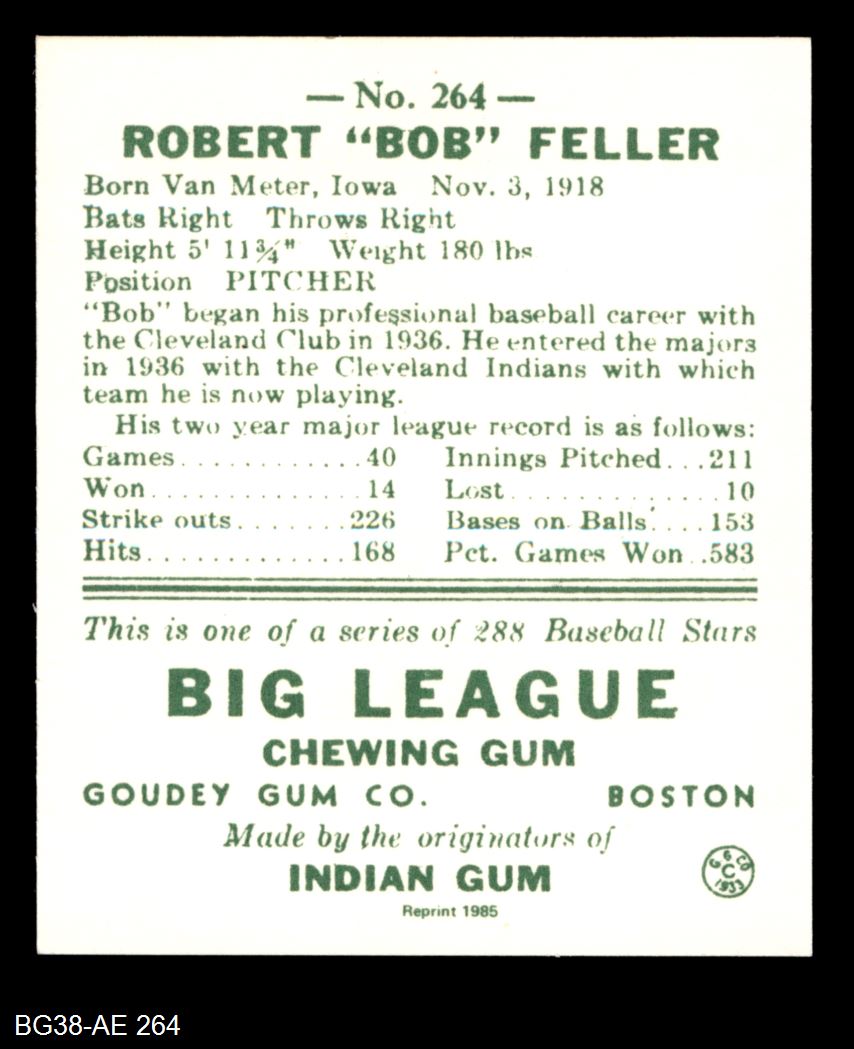 1938 Goudey Heads-Up Reprint #264 Bob Feller 8 - NM/MT