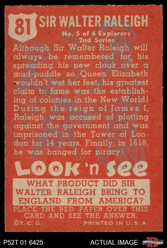 1952 Topps Look 'N See #81 Sir Walter Raleigh