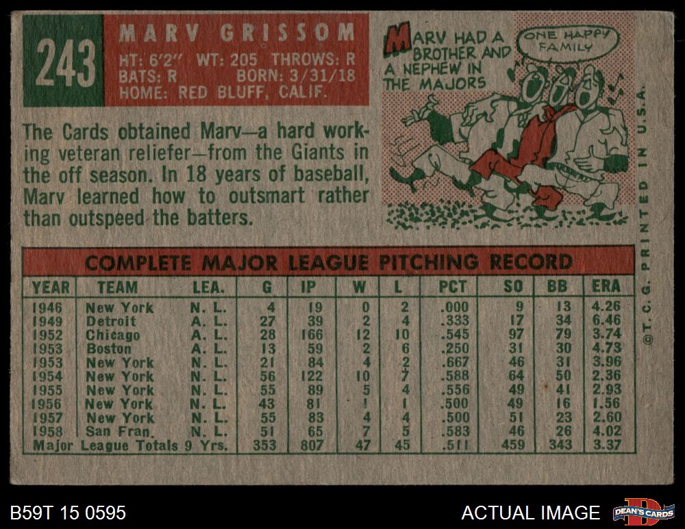 1959 Topps #243 Marv Grissom 2 - GOOD