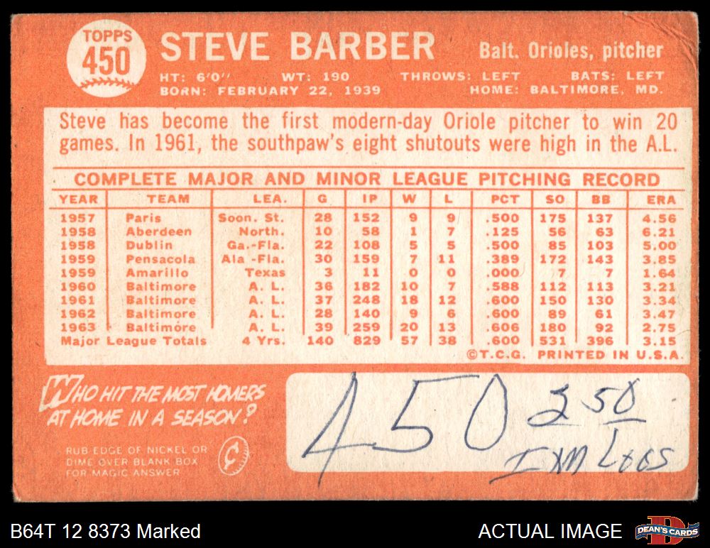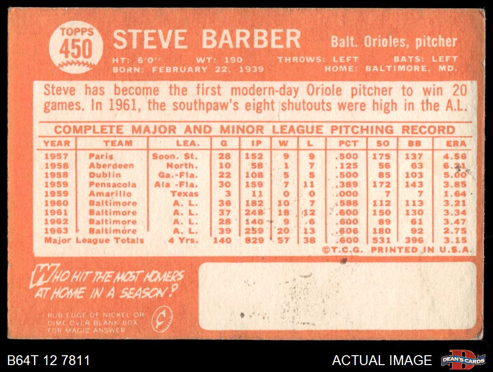 1964 Topps #450 Steve Barber 1.5 - FAIR