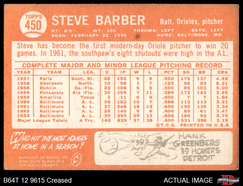 1964 Topps #450 Steve Barber