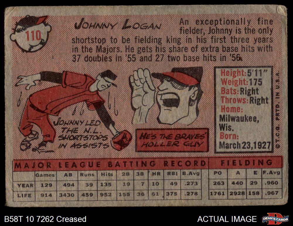 1958 Topps #110 Johnny Logan 1.5 - FAIR