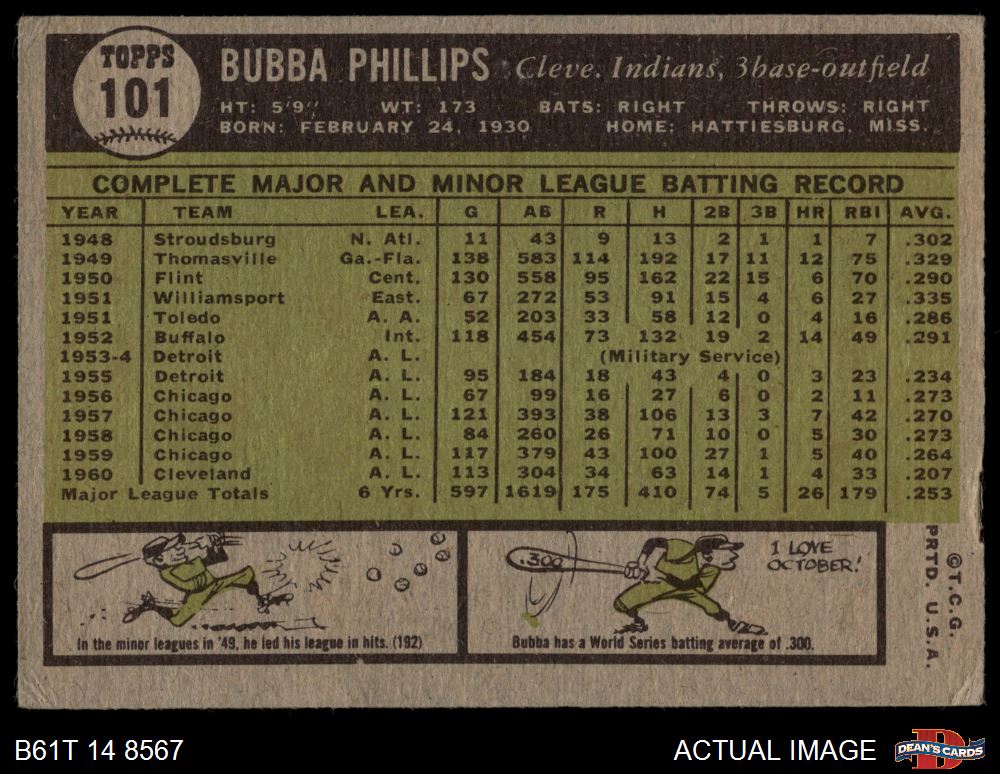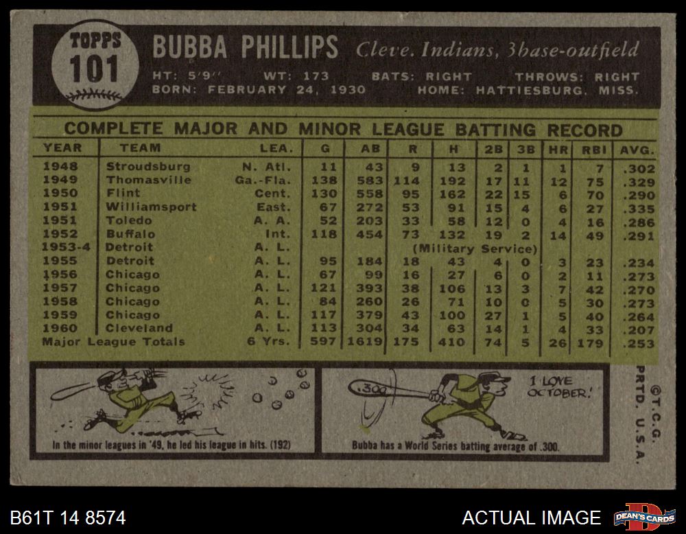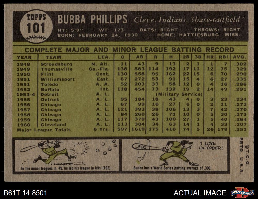 1961 Topps #101 Bubba Phillips