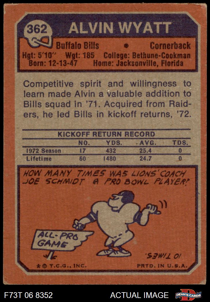 1973 Topps #362 Alvin Wyatt 3 - VG
