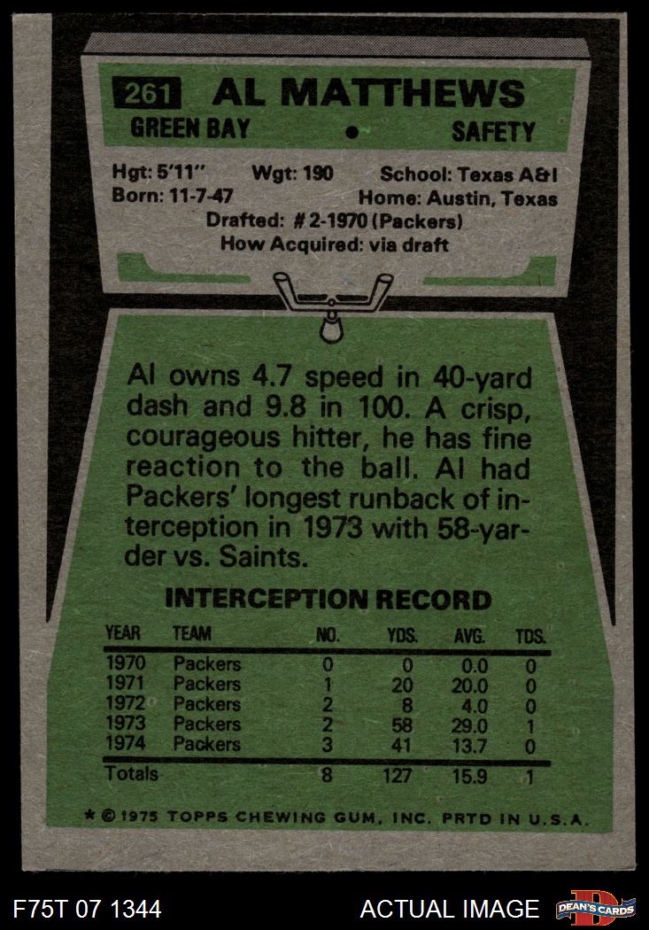 1975 Topps #261 Al Matthews 2 - GOOD