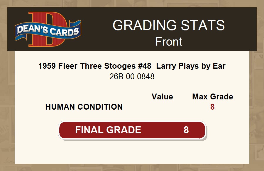 1959 Fleer Three Stooges #48 Larry Plays by Ear SGC 8 - NM/MT