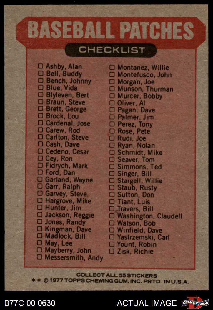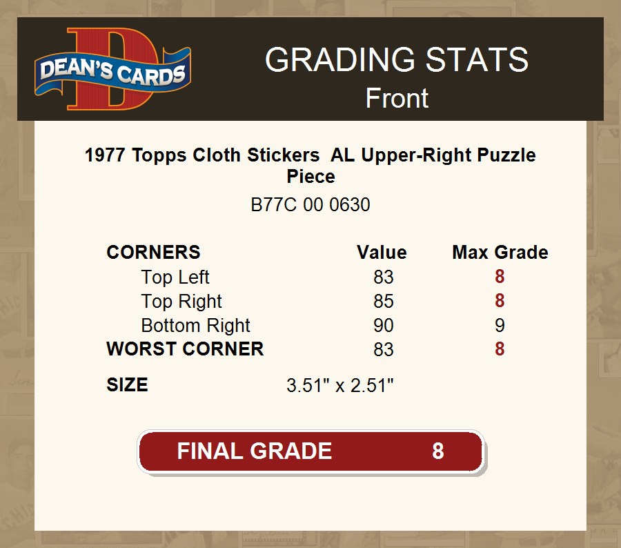 1977 Topps Cloth Stickers AL Upper-Right Puzzle Piece