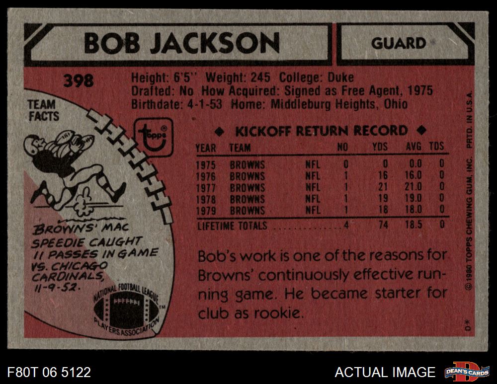 1980 Topps #398 Bob Jackson