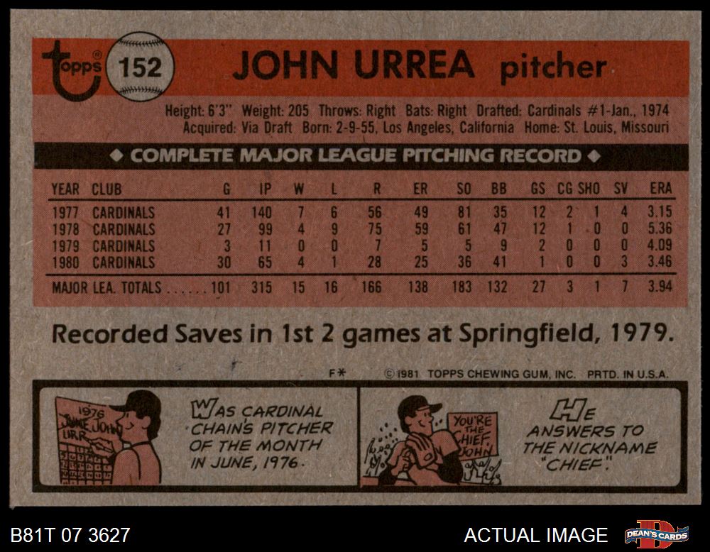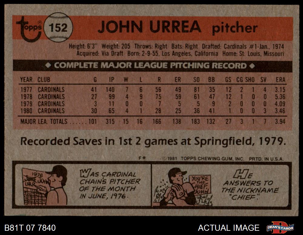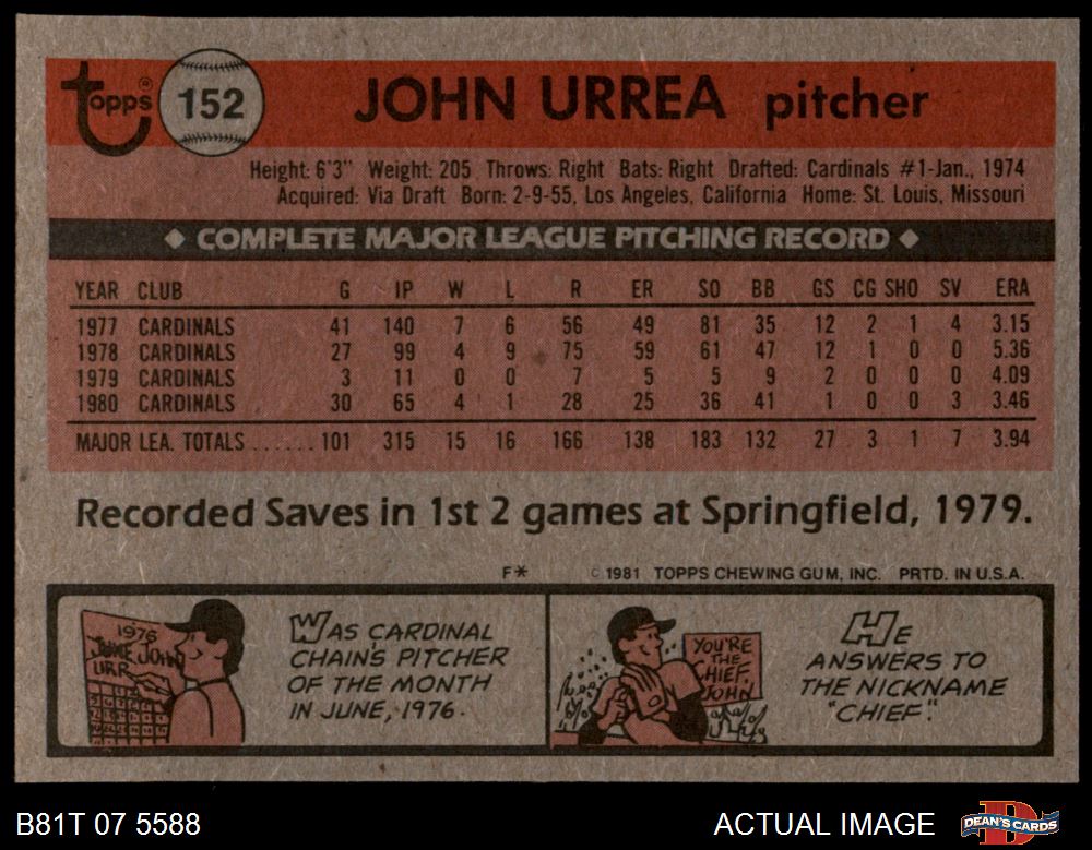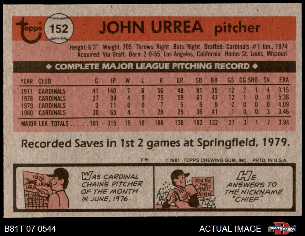 1981 Topps #152 John Urrea