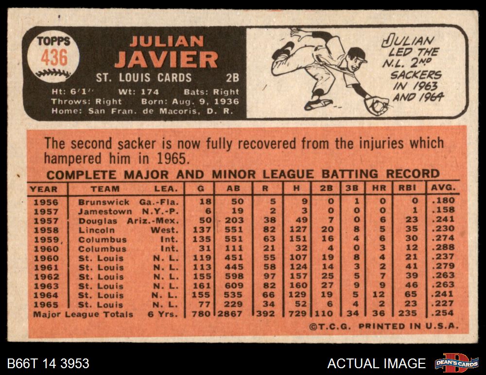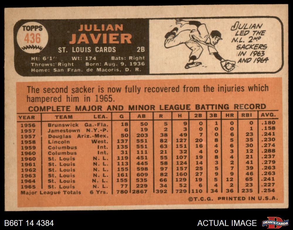 1966 Topps #436 Julian Javier 4 - VG/EX