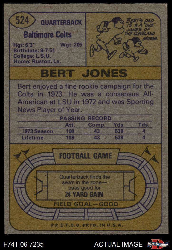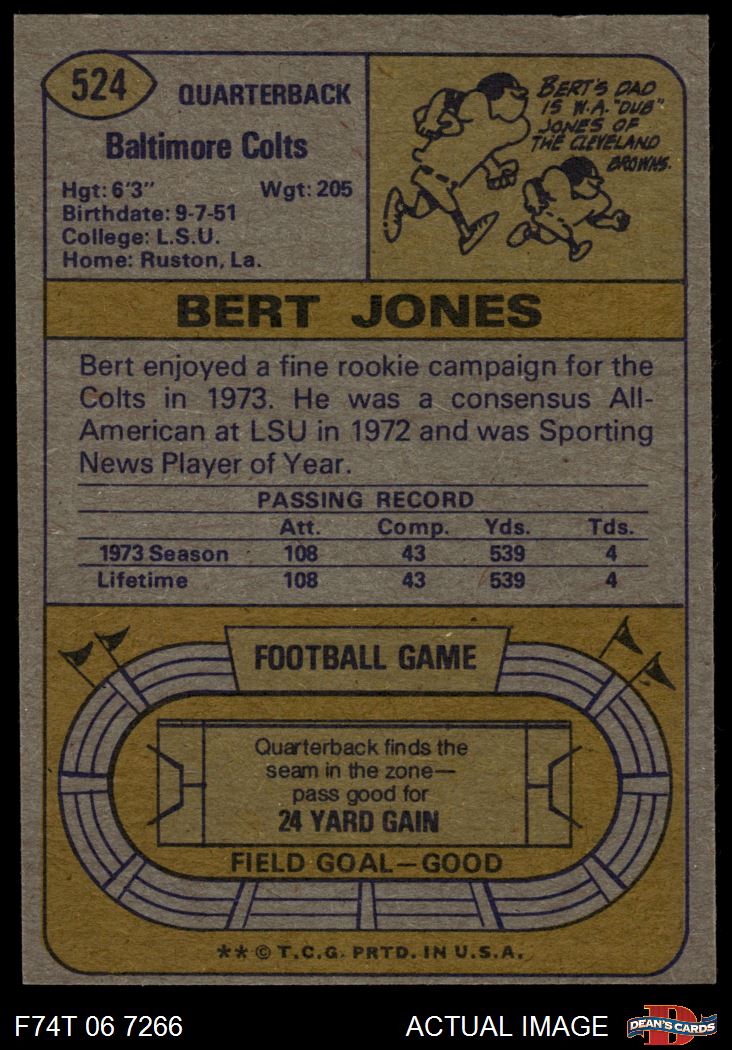 1974 Topps #524 Bert Jones