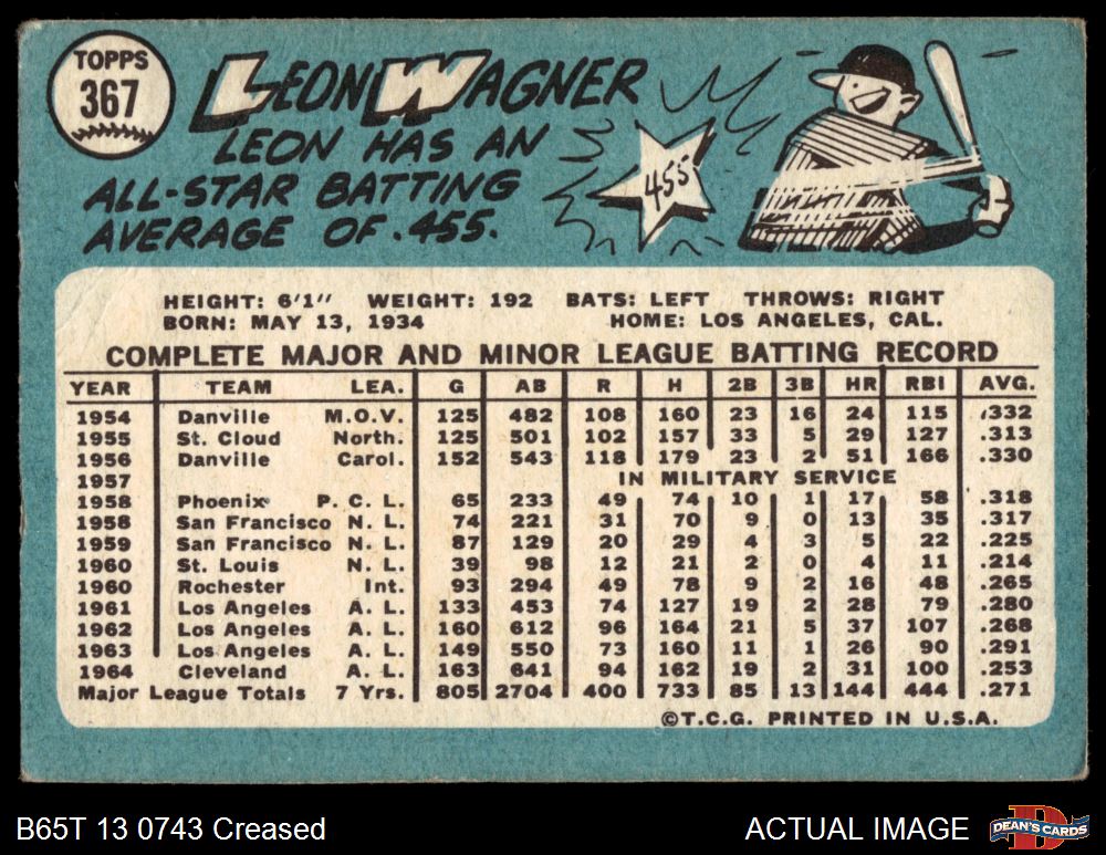 1965 Topps #367 Leon Wagner 2 - GOOD