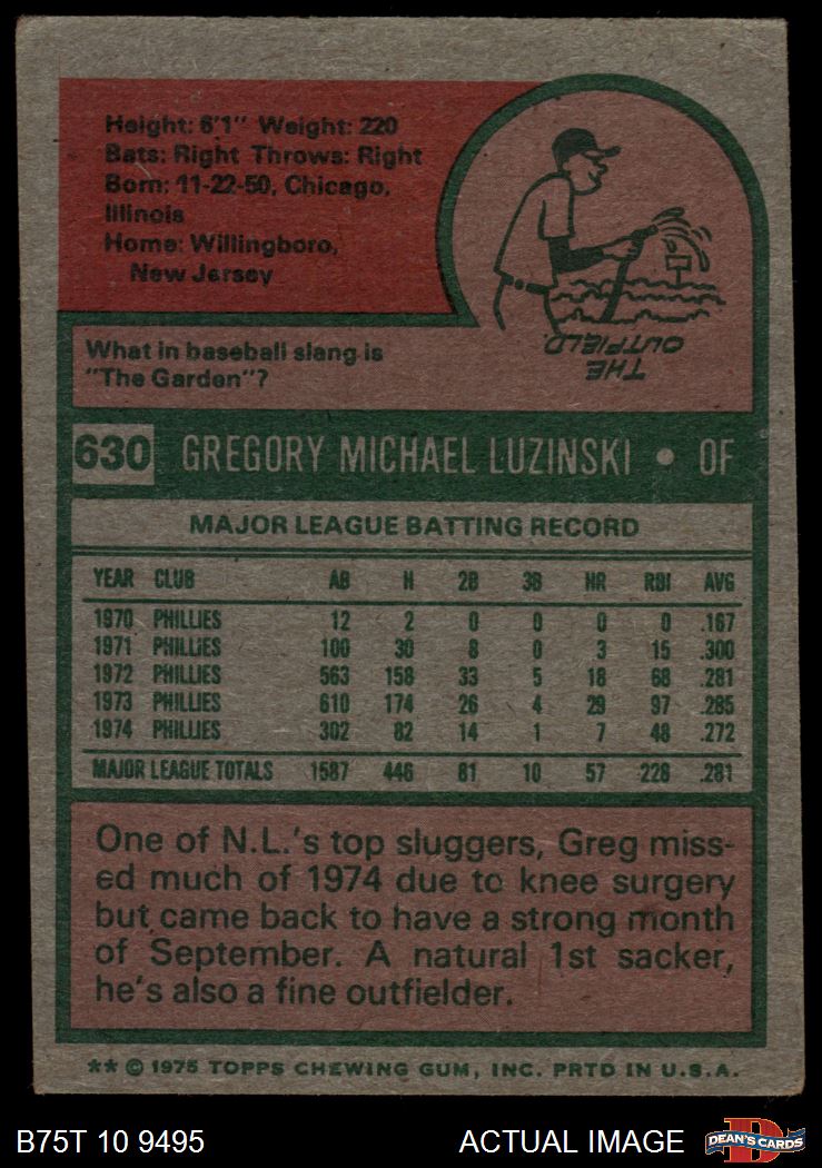 1975 Topps #630 Greg Luzinski 3 - VG