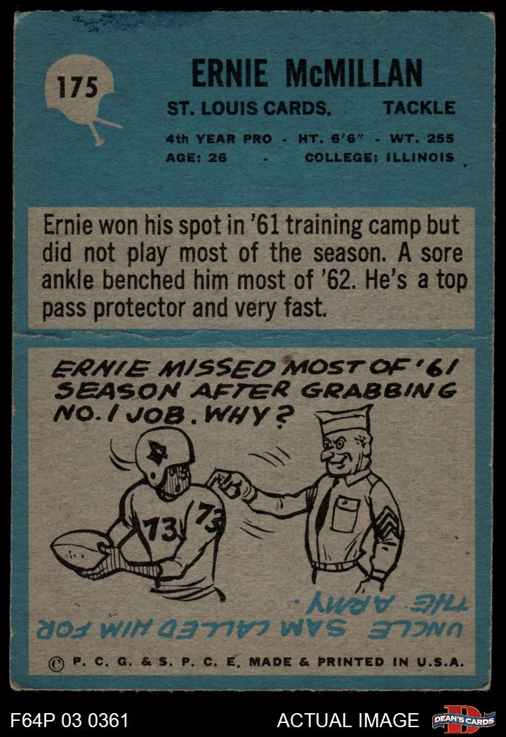 1964 Philadelphia #175 Ernie McMillan 1.5 - FAIR