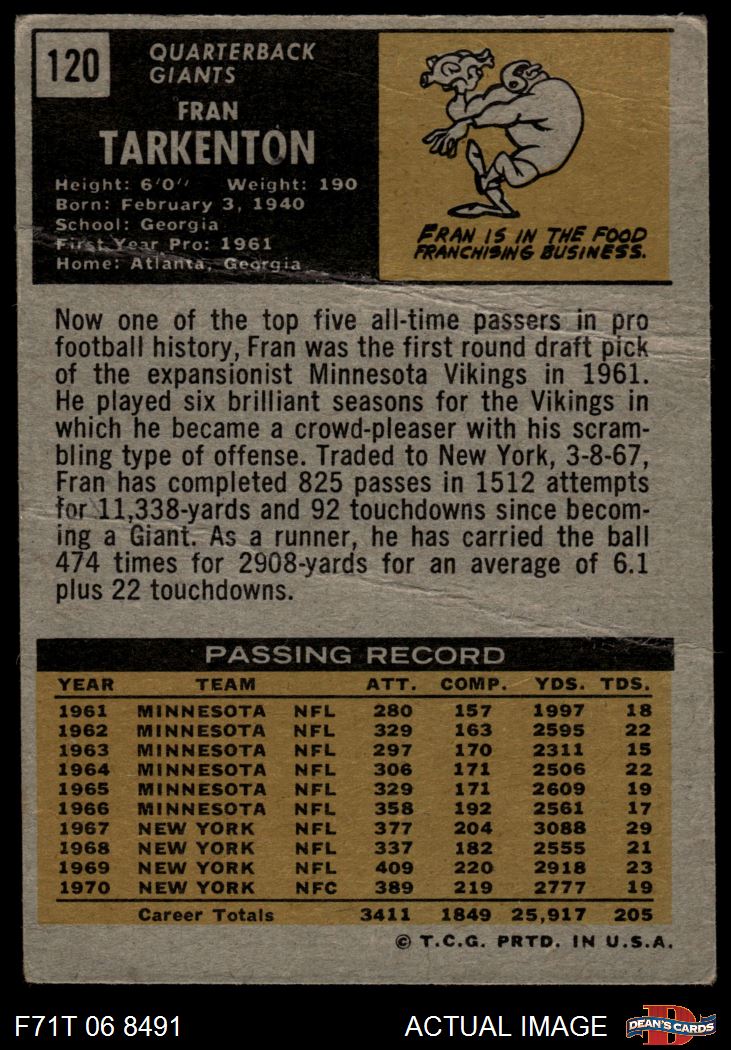1971 Topps #120 Fran Tarkenton 1 - POOR
