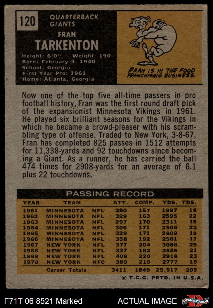 1971 Topps #120 Fran Tarkenton 1.5 - FAIR