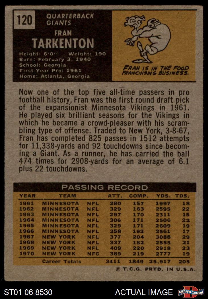 1971 Topps #120 Fran Tarkenton 3 - VG
