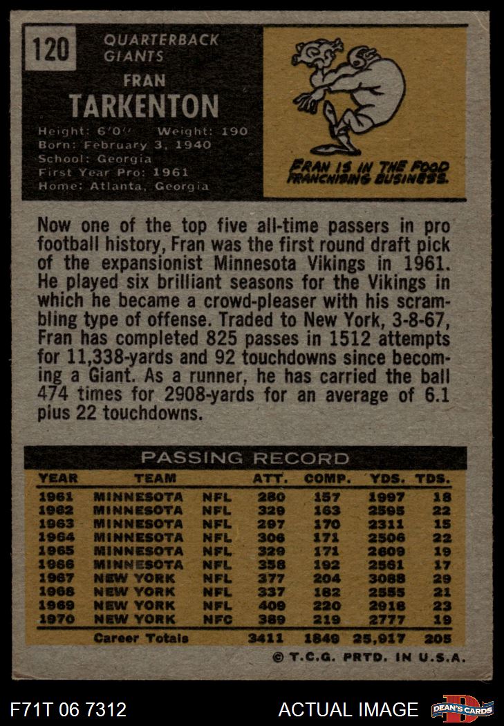 1971 Topps #120 Fran Tarkenton 4 - VG/EX