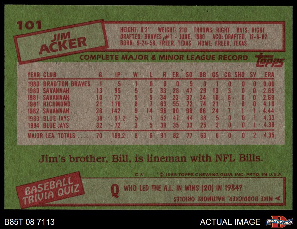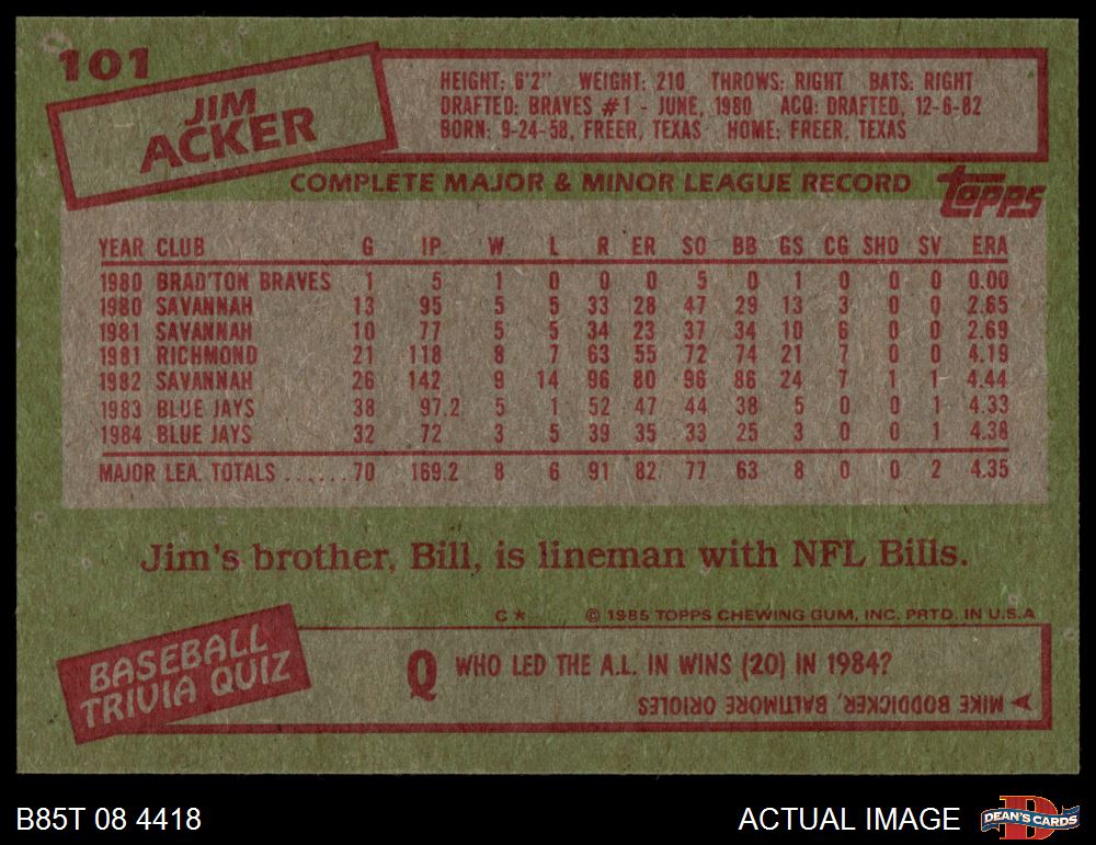 1985 Topps Baseball Cards (11,227 available)1985 Topps Blue Jays (494 available)