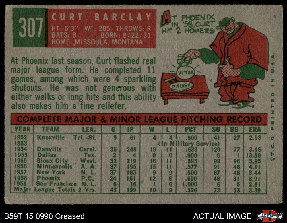 1959 Topps #307 Curt Barclay 2 - GOOD