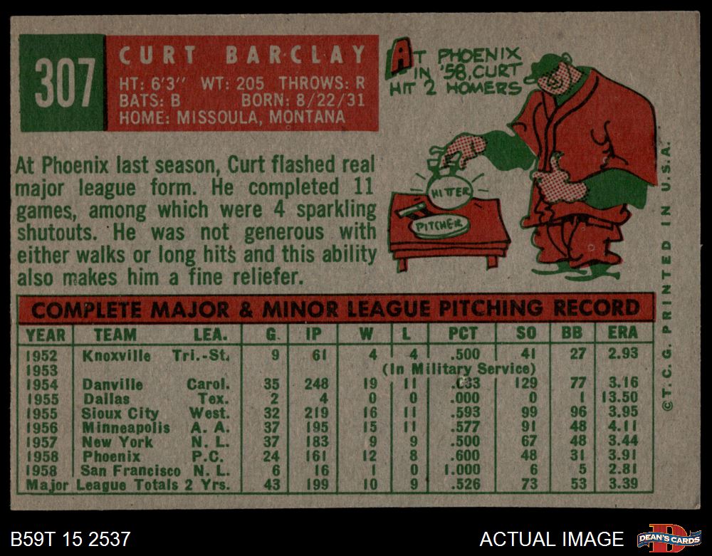 1959 Topps #307 Curt Barclay 4 - VG/EX