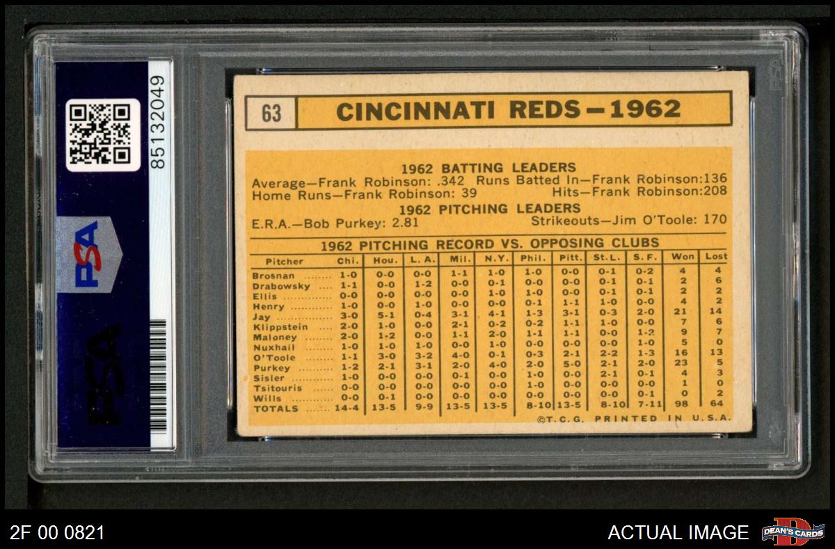 1963 Topps #63 Reds Team PSA AUTOGRAPHED