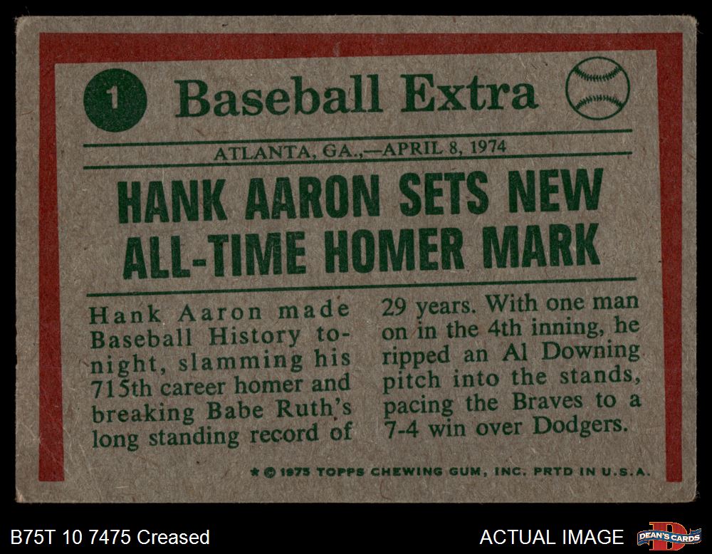 1975 Topps #1 - Hank Aaron Sets Homer Mark 1.5 - FAIR