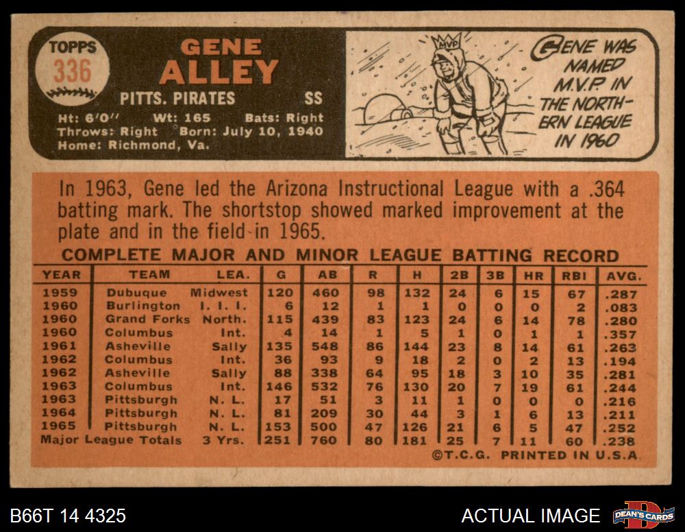 1966 Topps #336 Gene Alley 4 - VG/EX