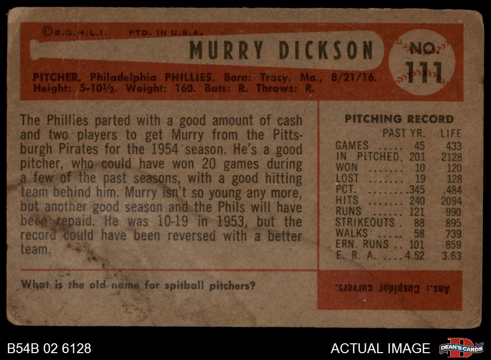 1954 Bowman #111 Murry Dickson 1 - POOR