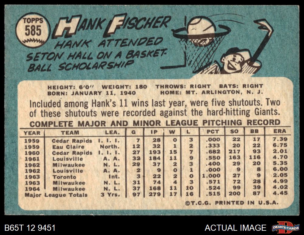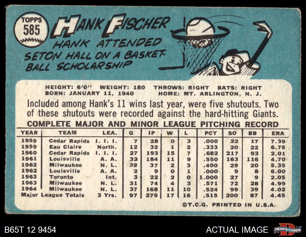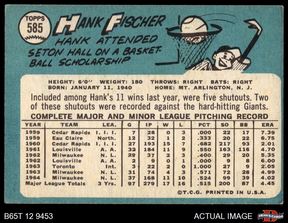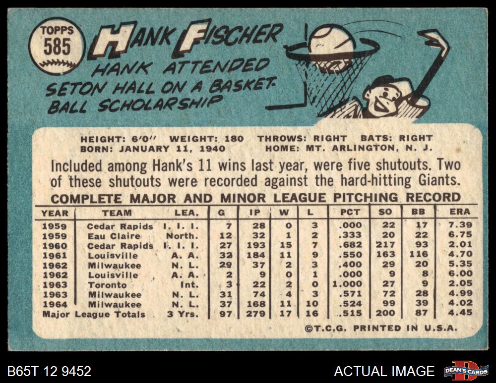 1965 Topps #585 Hank Fischer