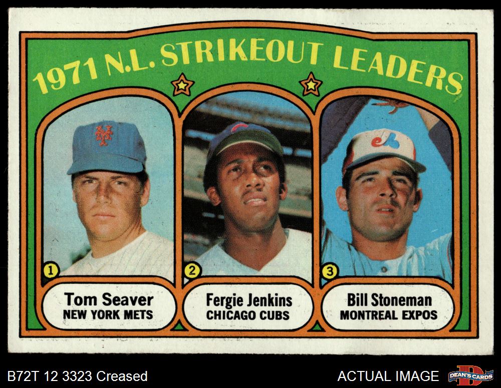 1972 Topps #95 - Fergie Jenkins / Tom Seaver / Bil Stoneman NL Strikeout Leaders 3 - VG