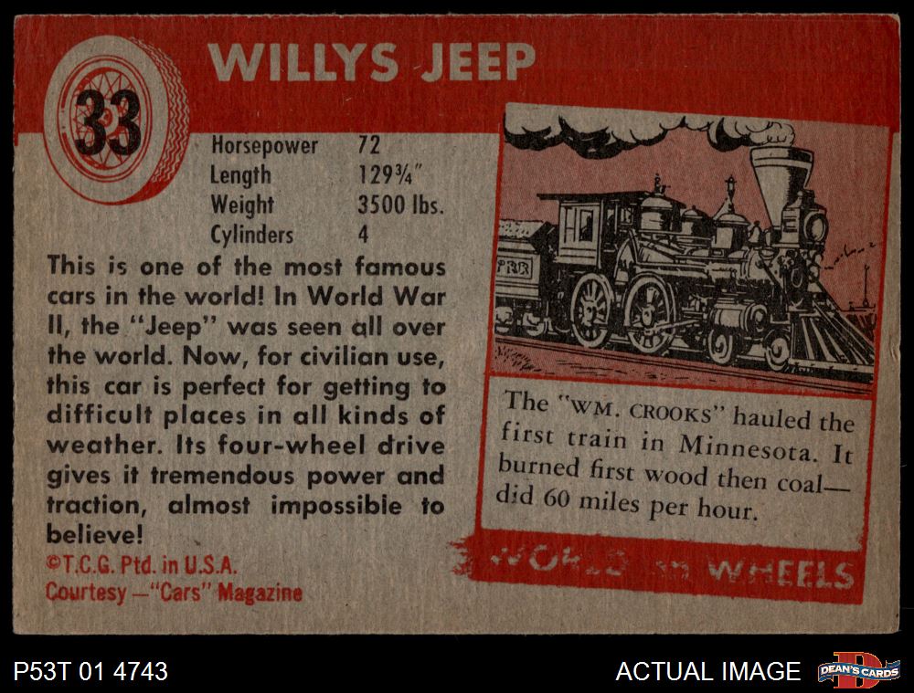 1954 Topps World on Wheels #33 Willy's Jeep 4 - VG/EX