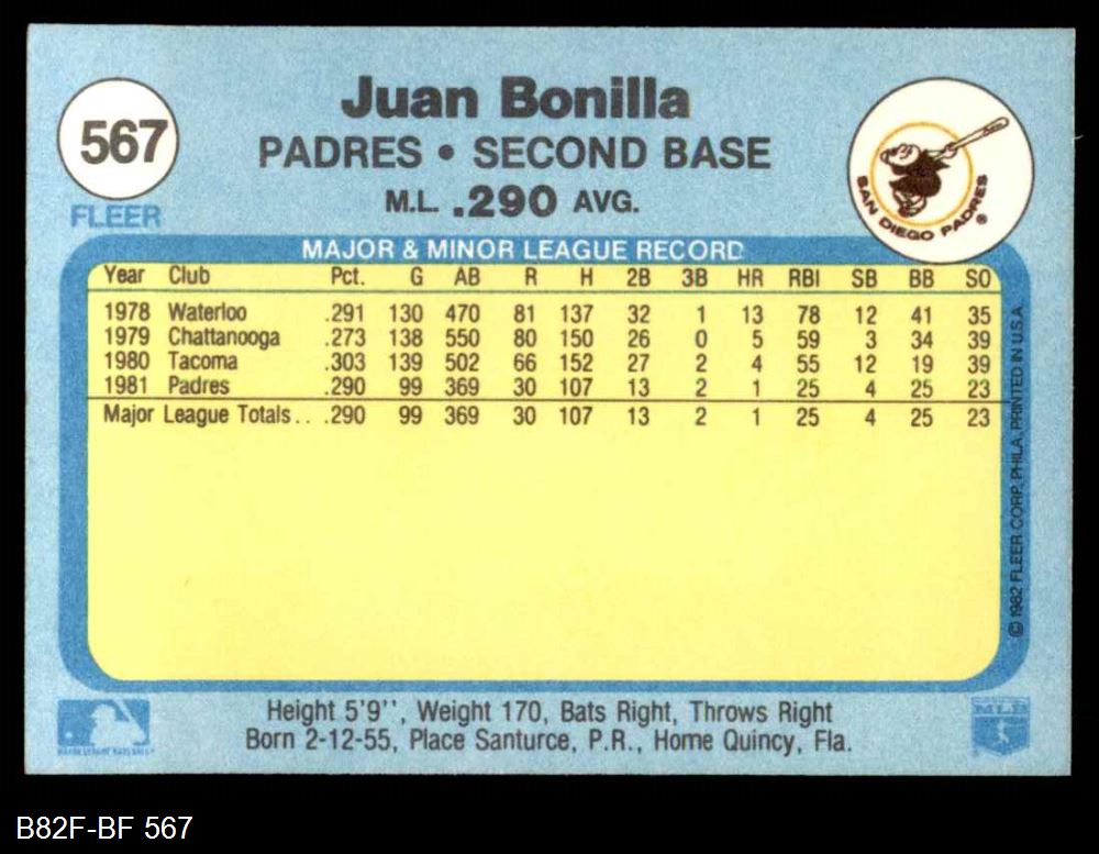 1982 Fleer #567 Juan Bonilla 8 - NM/MT