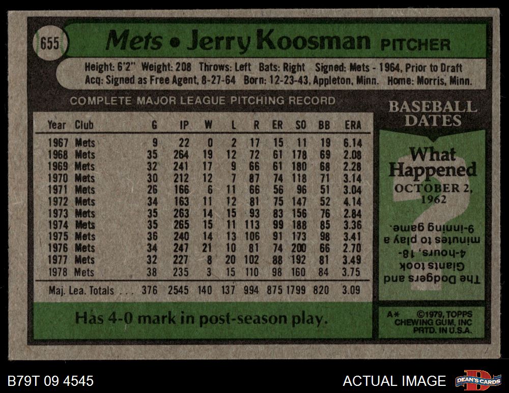1979 Topps #655 Jerry Koosman 3.5 - VG+