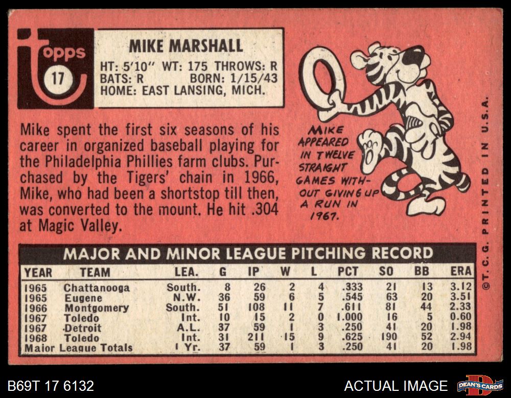 1969 Topps #17 Mike Marshall