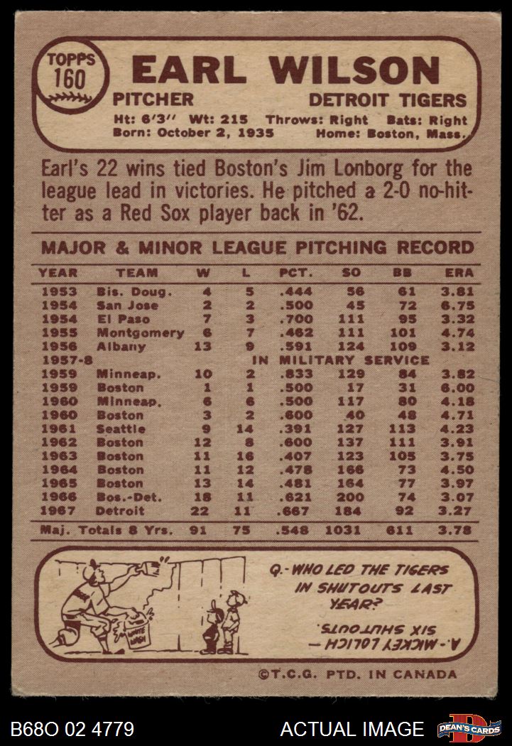 1968 O-Pee-Chee #160 Earl Wilson 3 - VG