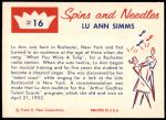 1960 Fleer Spins and Needles #16 Lu Ann Simms 7 - NM