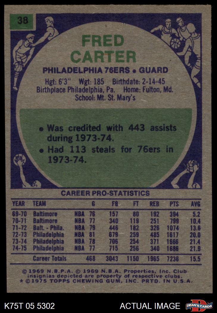 1975 Topps #38 Fred Carter 5 - EX