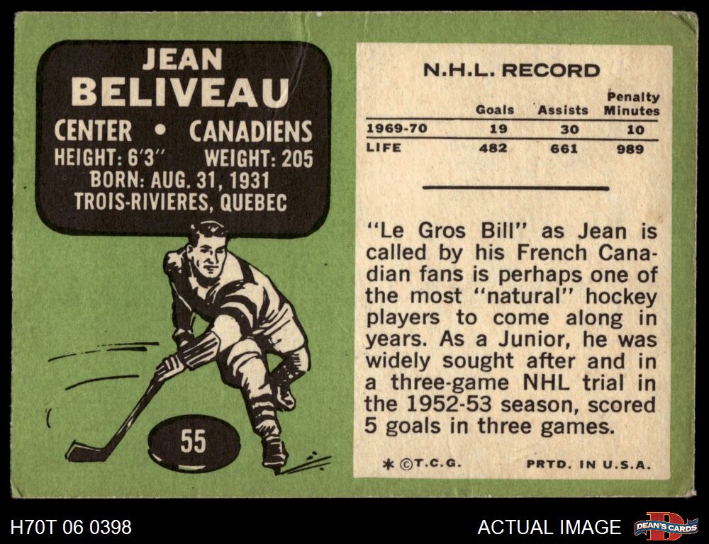 1970 Topps #55 Jean Beliveau 2 - GOOD