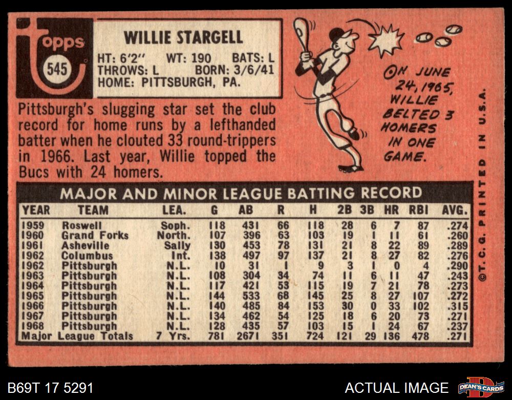 1969 Topps #545 Willie Stargell Front Thumbnail