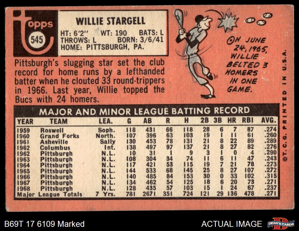 1969 Topps #545 Willie Stargell 1.5 - FAIR