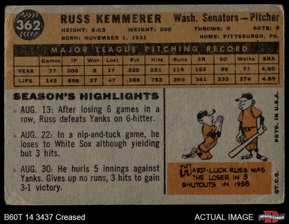 1960 Topps #362 Russ Kemmerer 1.5 - FAIR