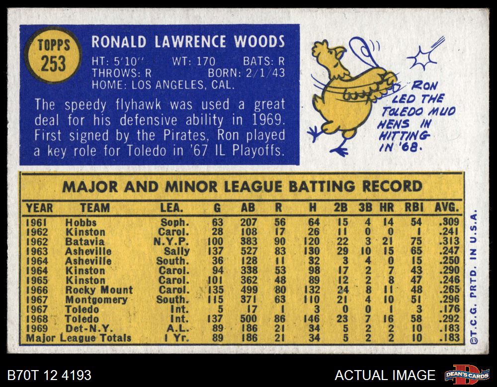 1970 Topps #253 Ron Woods 5 - EX