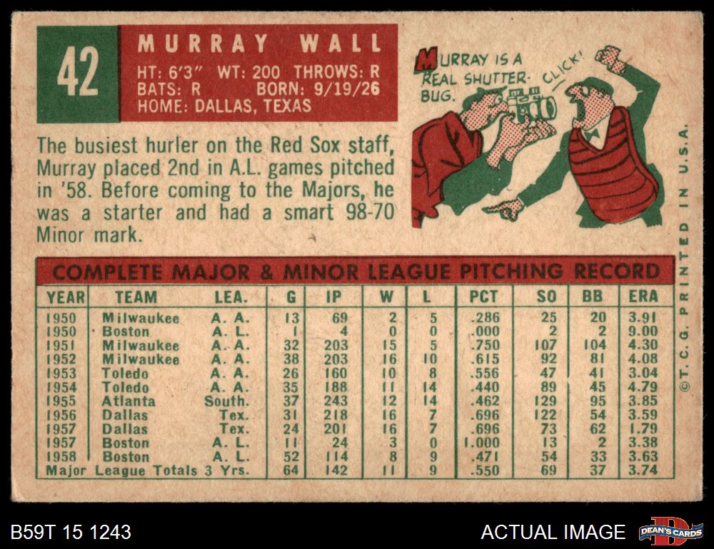 1959 Topps #42 Murray Wall 3 - VG