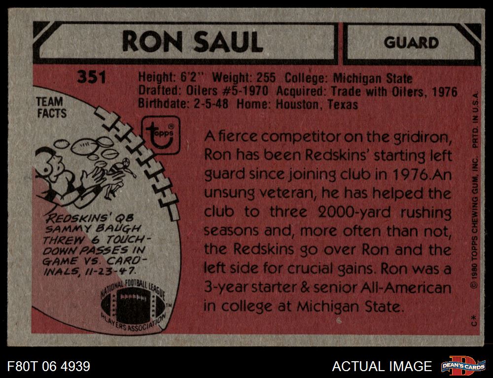 1980 Topps #351 Ron Saul 4 - VG/EX