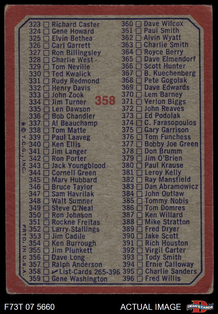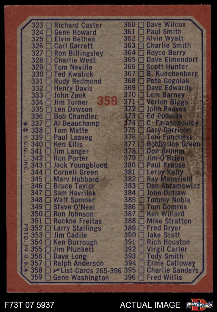 1973 Topps #358 Checklist 265-396