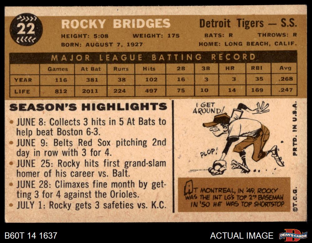 1960 Topps #22 Rocky Bridges