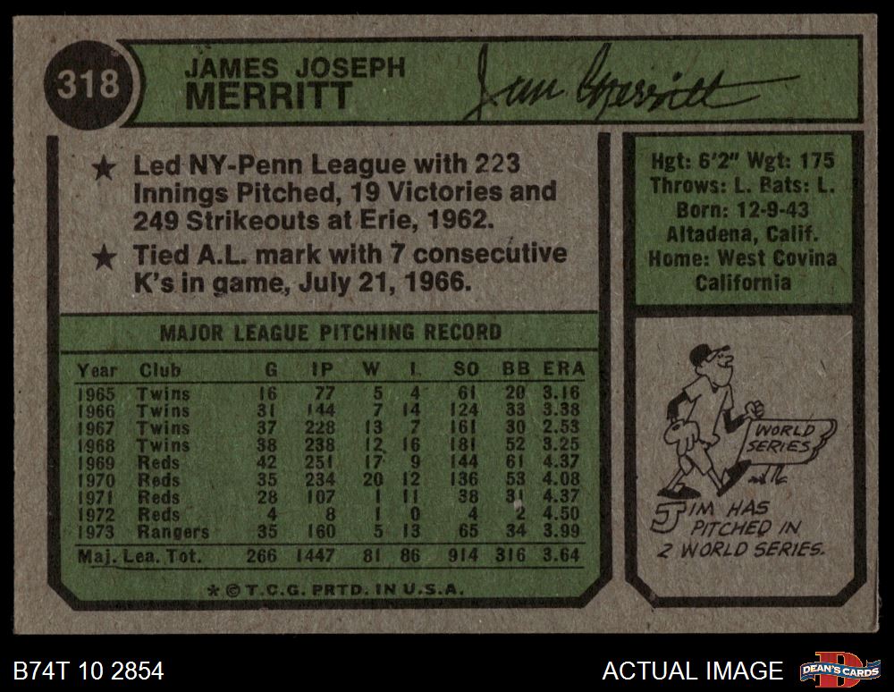 1974 Topps #318 Jim Merritt 4.5 - VG/EX+