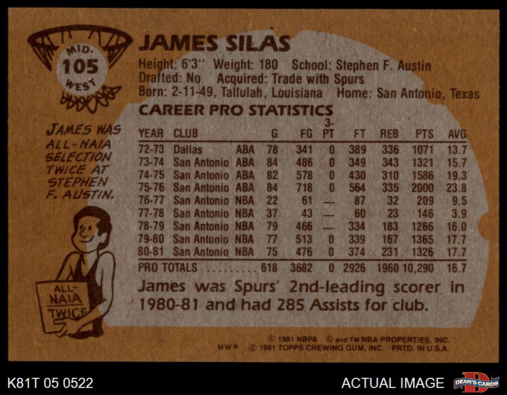 1981 Topps #105 MW James Silas 6 - EX/MT