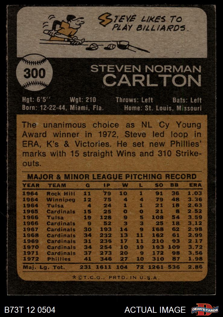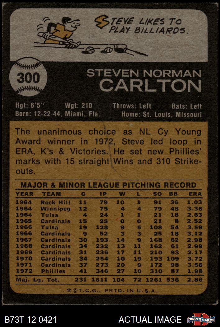 1973 Topps #300 Steve Carlton 3 - VG